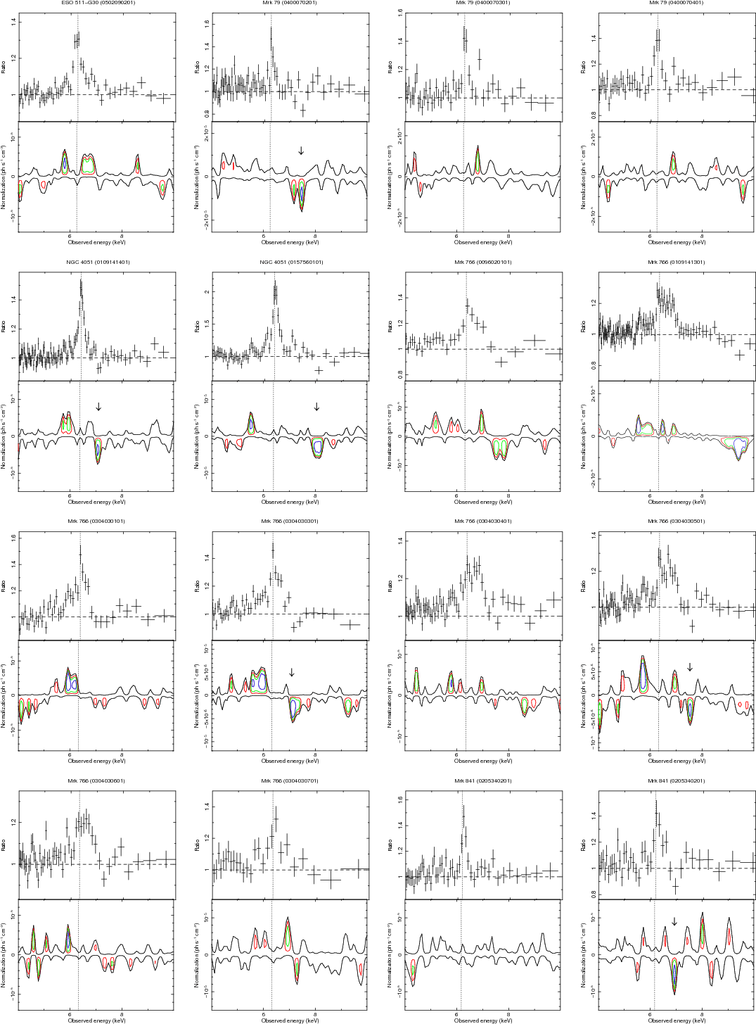 The Fe K absorption lines are pointed by arrows. The vertical line
