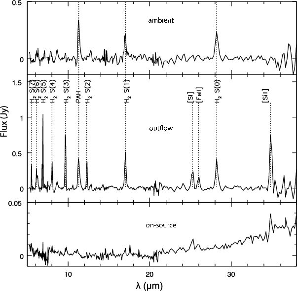 shown in comparison with a spectrum of the off-outflow region of the same area ( top). H2