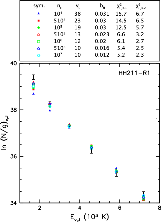 an existing grid of molecular shock models. The physical properties of