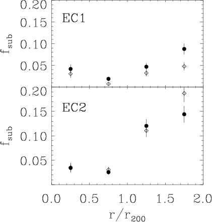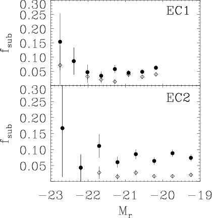 EC1 and EC2 respectively show substructure. This fraction is larger in