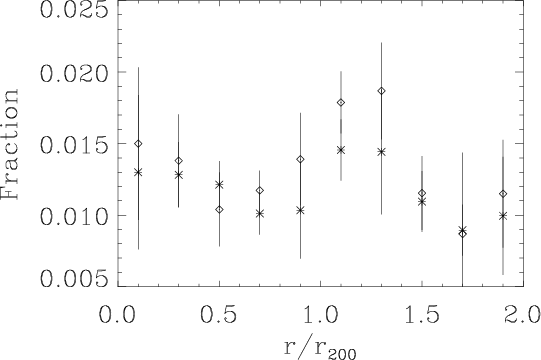 r < r200) 11% and 33% of the clusters of