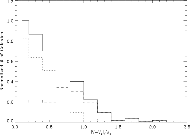galaxies are included. The distribution of relative velocities of