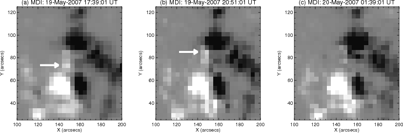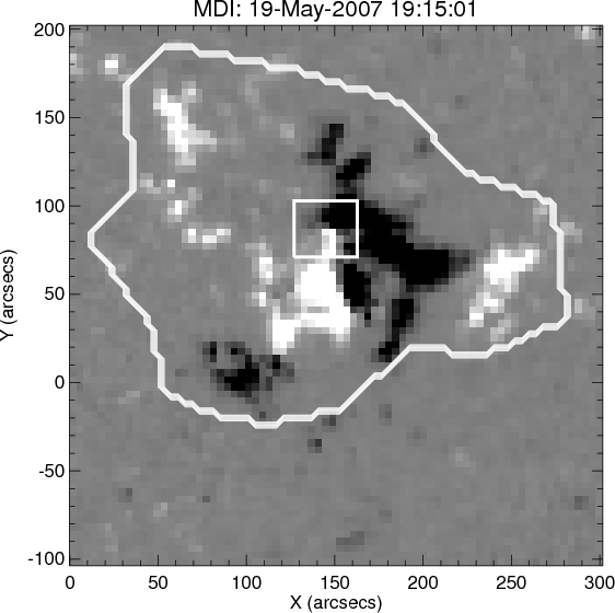 onset region. The magnetic field evolution was observed in SoHO/MDI