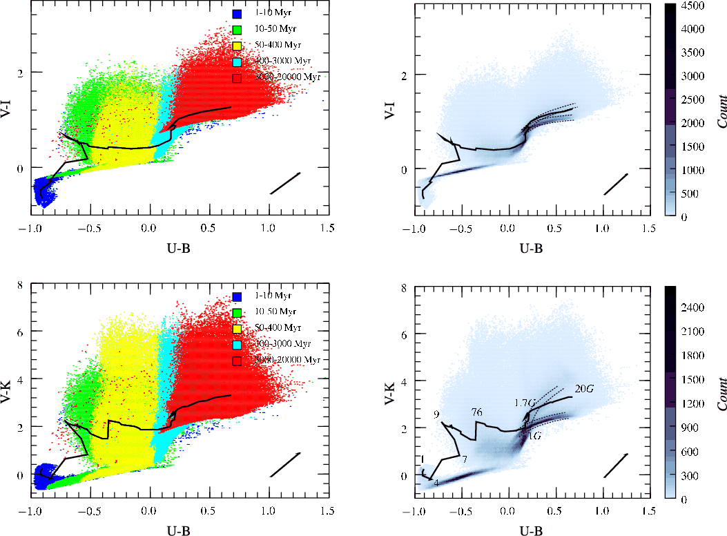 logarithmic scale between 1 Myr and 20 Gyr. Metallicity is