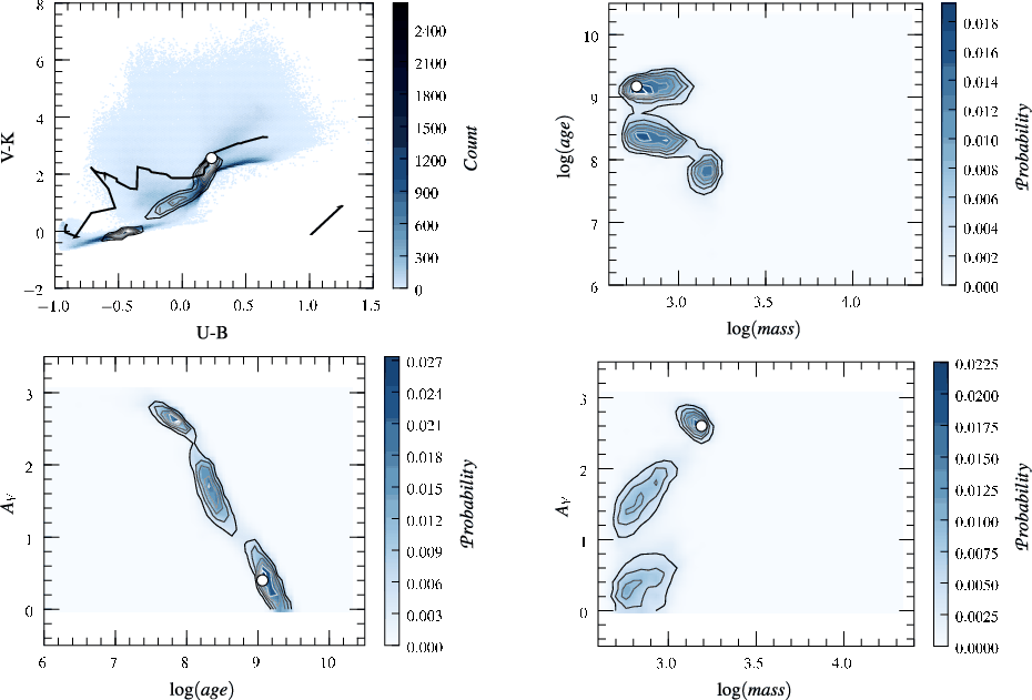The most probable colours are offset from those predicted by continuous population synthesis when masses