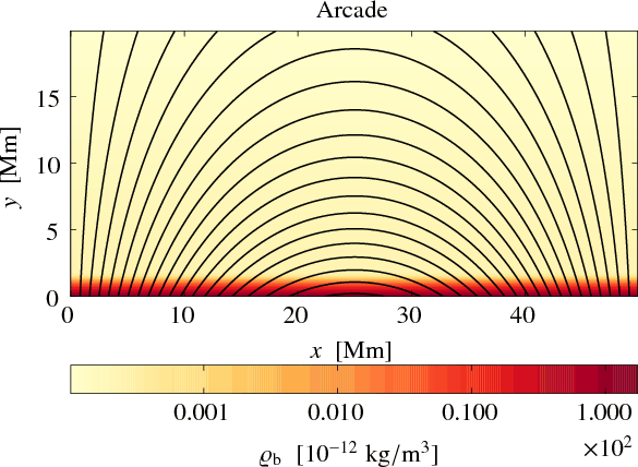 In this section, we detail the initial setup used in this paper. The solar corona is modeled as a low mass density, highly magnetized plasma overlaying a dense photosphere/chromosphere.