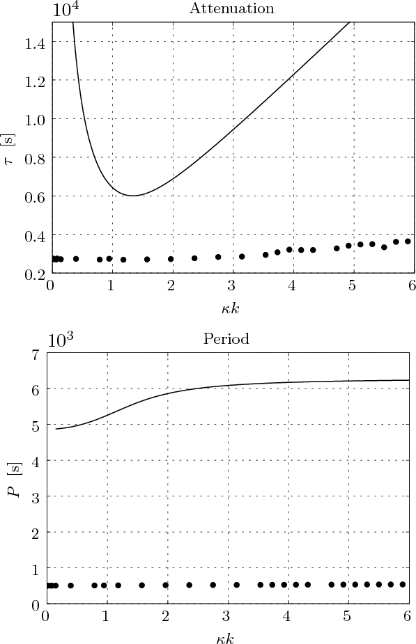 Figure 6 illustrates the attenuation time (top panel) and waveperiod (bottom panel).