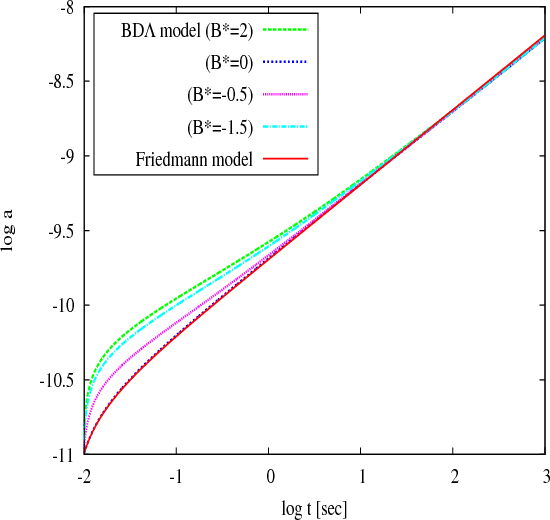 from the Friedmann model at t<100 s, which depends on the specific parameters. Therefore the