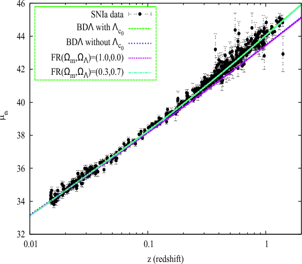 with including another constant cosmological term in a flat universe. Recent SNIa observational data (Astier et al. 2006; Riess et al. 2007; Kessler et al. 2009) are adopted to constrain the models. Concluding remarks are given in Sect. 5.