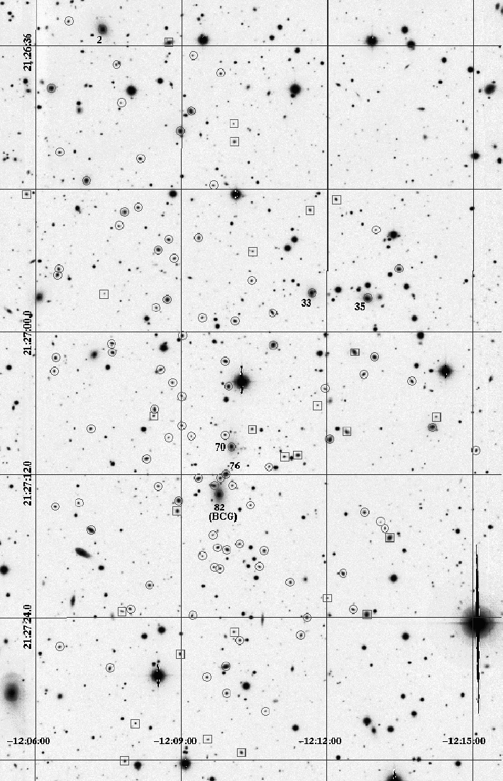Table 1: Velocity catalog of 125 spectroscopically measured galaxies in the field of the cluster A2345. ID. 82, in boldface, highlights the BCG.