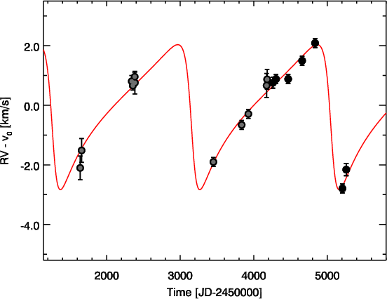 5.2 years, an eccentricity of e = 0.59, and a radial velocity semi-amplitude of 2.4 km s-1.