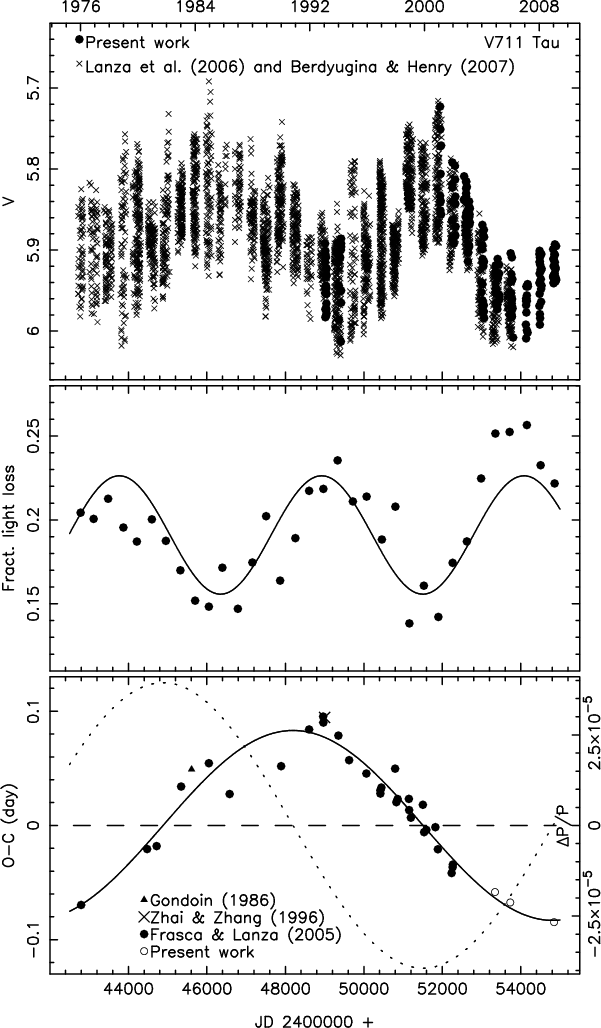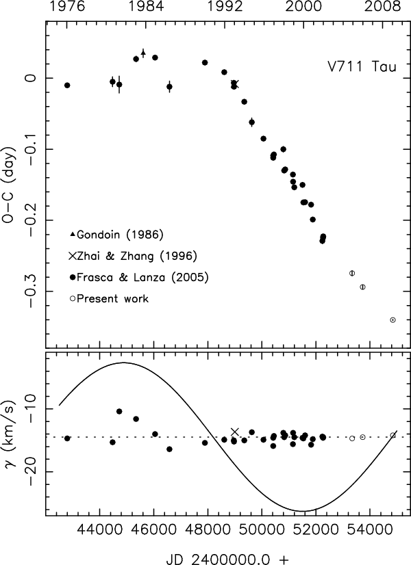 The variation in the orbital period of V711 Tau was well-established by Frasca & Lanza (2005),