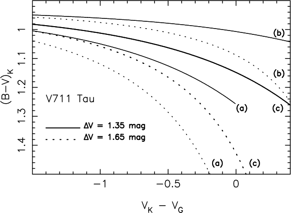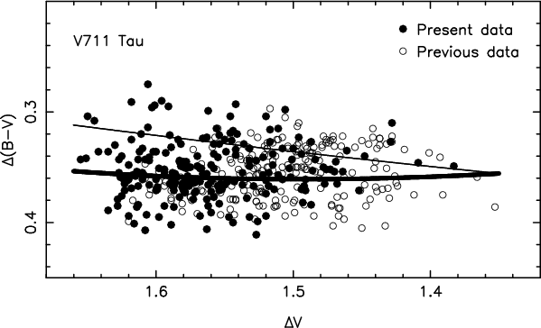 V711 Tau, and determine why the (B-V) colour of the star appears to be nearly independent of its V magnitude.
