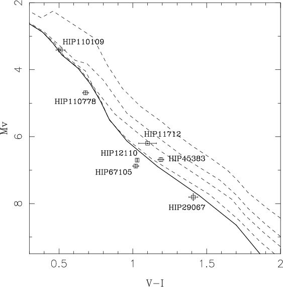 Table 10: Membership criteria for the Hyades candidate stars. (Convergence Point: 6.40 h, 6.50 degrees; U =-39.7 km s-1, V = -17.7 km s-1, W = -2.4 km s-1; Age: 600 Myr).