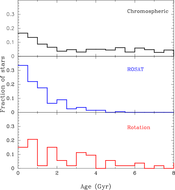 Other applications are related to activity studies, i.e., flux-flux and rotation-activity-age relationships (e.g Martínez-Arnáiz et al. 2010), or search programmes to detect stellar and substellar companions (e.g Hormuth et al. 2007). Finally, we point out that an important fraction of the stars analysed in this paper will be observed in the framework of the DUNES (DUst around NEarby Stars) programme, an approved Herschel Open Time Key Project with the aim of detecting cool faint dusty discs, at flux levels as low as the Solar EKB (Maldonado et al. 2010; Eiroa et al. 2010).