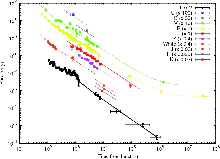 and millimeter telescopes allowed us to follow the afterglow evolution