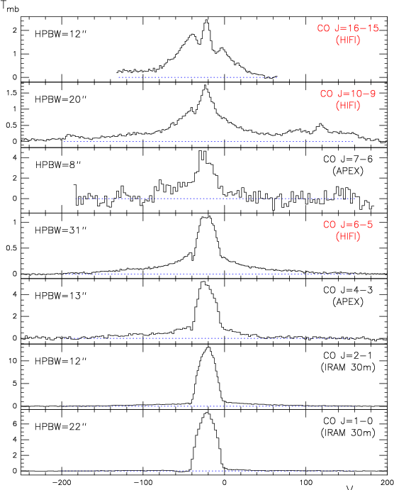 In Fig. 1 we also show our HIFI spectra of 13CO lines. The 13CO J = 16-15 observations are not very sensitive, so the line is not detected
