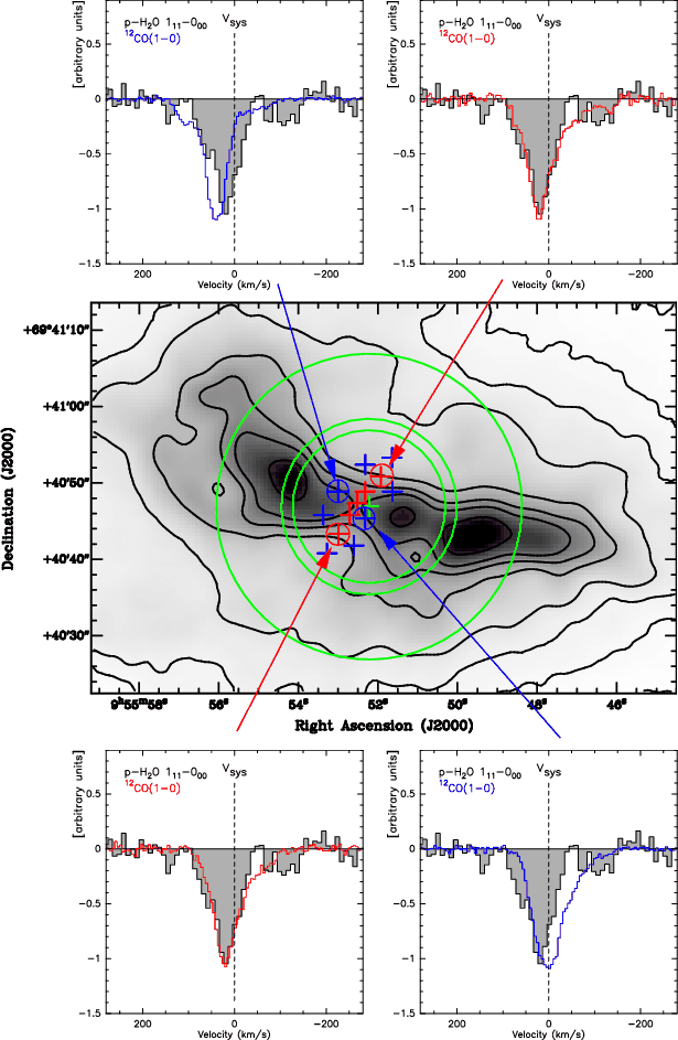 given in Table 1. Bottom: water-line profiles superposed on the CO( |