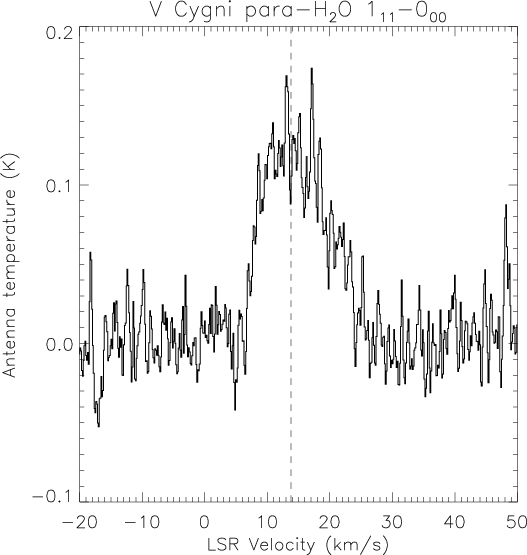 origin of the water vapour in V Cygni. The best-fit parameters are given in Table 2, for each of the two models, and the fit for Model B is shown in Fig. 3. For an assumed water ortho-to-para ratio of 3, the required water outflow rates are 3