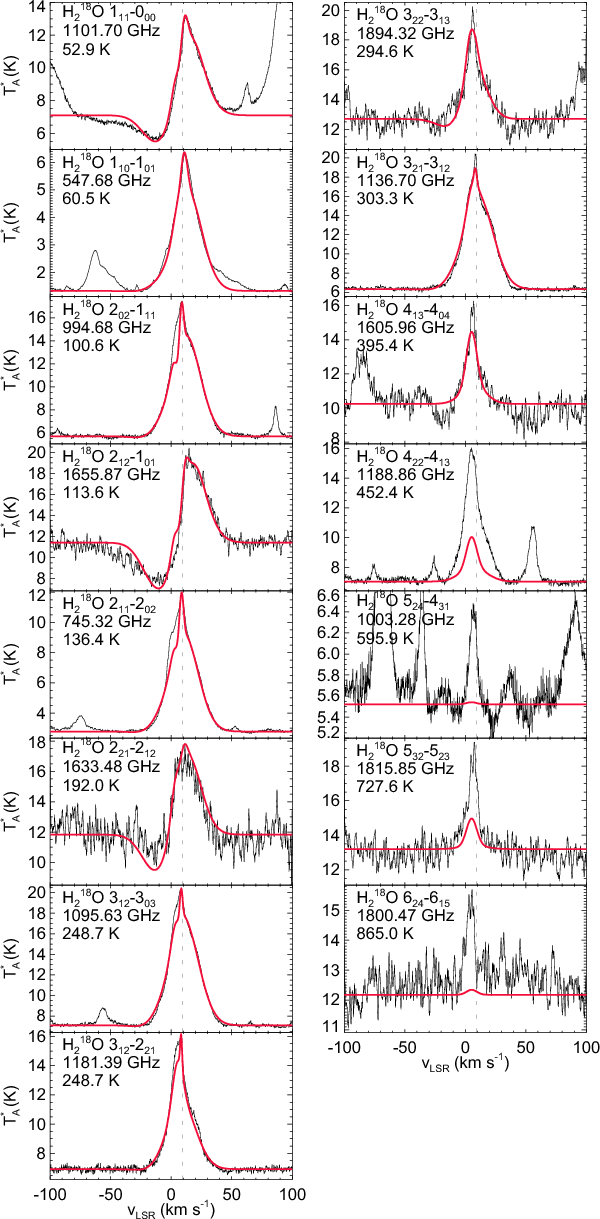 with elevated water abundances measured previously toward KL (cf. Cernicharo et al. 2006)