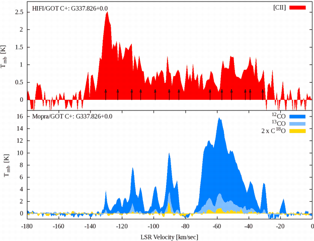 HIFI instrument. We used the [C II] emission, together with