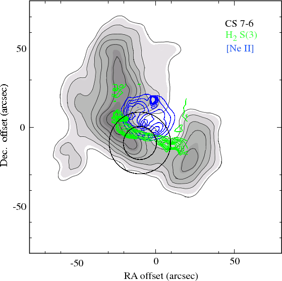 Overview of the PDR associated with Mon R2. Gray scales represent the CS 7