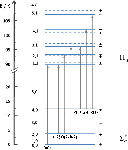 where the energy of the levels is given by EJ = hBJ(J+1) and the rotational constant for the lower vibrational state (