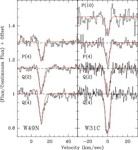 Key words: ISM: lines and bands - ISM: molecules - radiative transfer - ISM: individual objects: W49N - ISM: individual objects: W31C