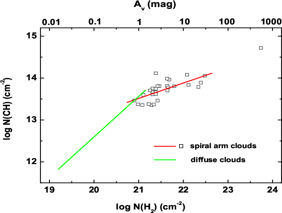 Figure 2 presents the relationship between the CH and H2column densities. A least-squares fit (excluding the Sgr B2(M)