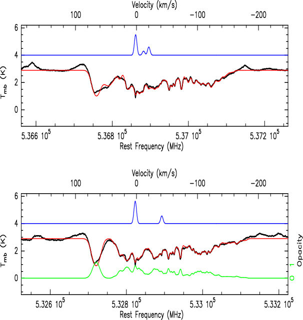 While physical and chemical conditions of molecular clouds associated with star-forming regions are widely explored by observing various molecular species, much less is known about the chemistry of the bulk of molecular clouds in the spiral arms of our Galaxy. These have mostly been studied only in the CO molecule, with some exceptions. These exceptions consist of clouds that happen to lie along the line-of-sight to a bright Galactic or extragalactic continuum source, and can be observed in absorption. Examples for spiral arm clouds probed by gas absorption are the Sgr B2, W49, W51, and Cas A millimeter continuum sources, where the chemistry was studied mostly through low-energy lines of molecular species (e.g., Greaves & Williams 1994; Greaves & Nyman 1996; Gerin et al. 2010; Menten et al. 2010; Lis et al. 2010; Schilke et al. 2010; Tieftrunk et al. 1994; Wyrowski et al. 2010). Liszt & Lucas (2002) also made important contributions to this field through observations of absorption line clouds against quasars. The observations show that most of the absorption signal arises from diffuse/translucent clouds with low gas density and excitation temperature, suggesting that the ambient ultraviolet field plays a prominent role in determining the chemistry (Lis et al. 2010; Gerin et al. 2010; Neufeld et al. 2010).