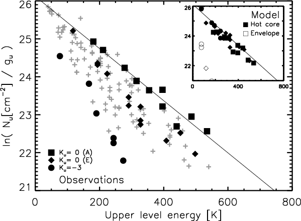 100 K hot core regime are implied by the obtained rotational temperatures of