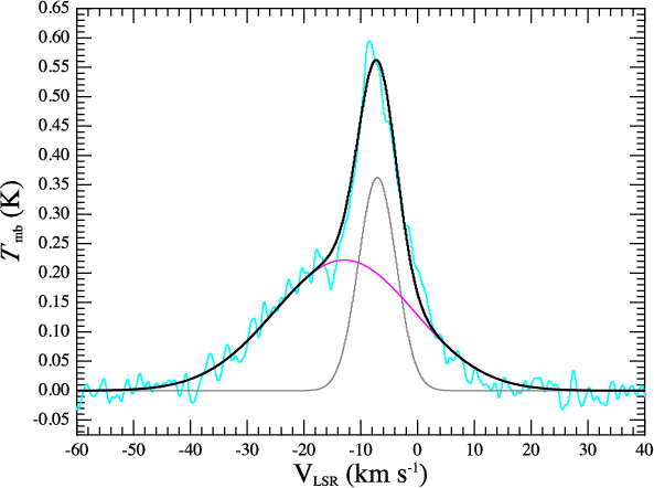 of the line profiles are not reproduced. The broader component appears