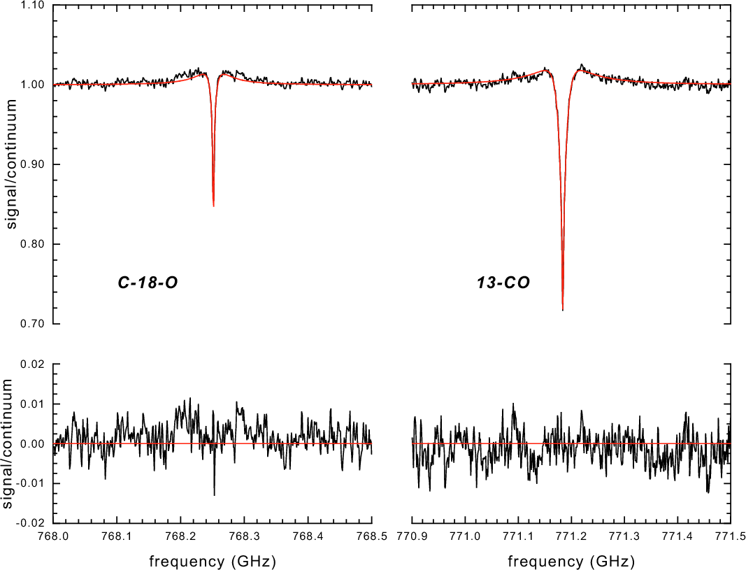 isotopes 13CO at 771 GHz and C18O and 768 GHz in
