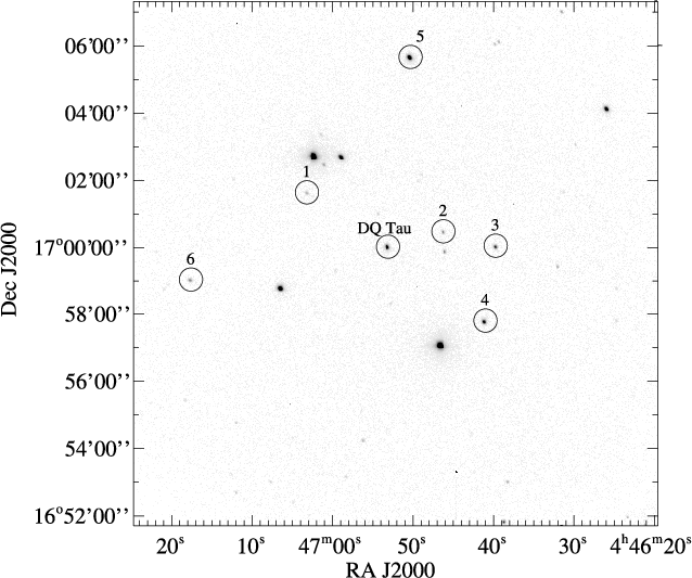 The comparison stars used to derive the differential photometry for DQ Tau. The figure shows the complete 15.6