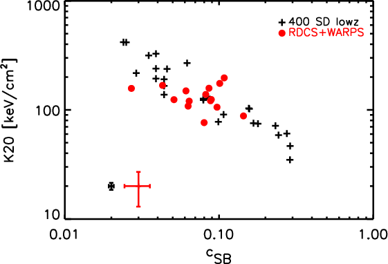 and (iii) 15 clusters drawn from the Rosat Distant Cluster Survey and the Wide Angle Rosat Pointed Survey, with median