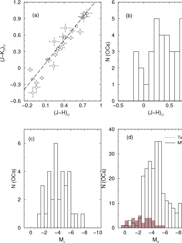 - Both samples have similar MV distributions. For the OCs in common we used the more recent values of Lata et al. (2002).