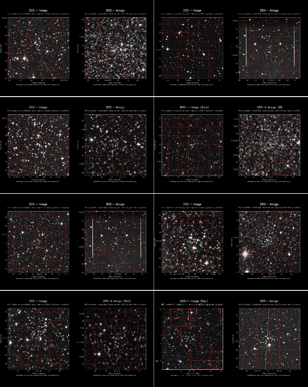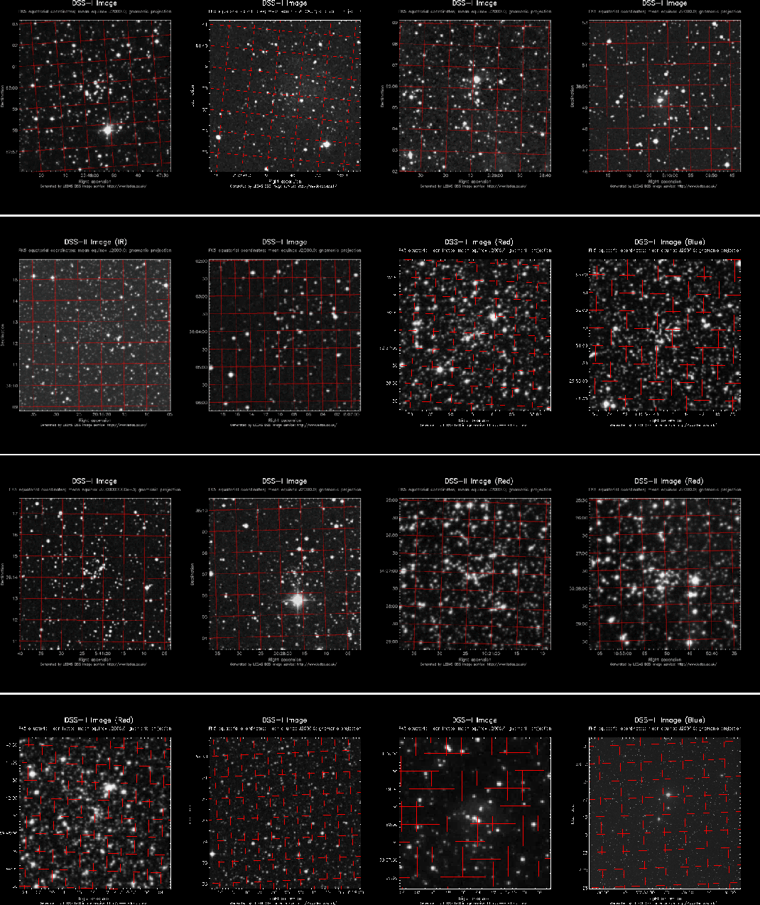 Figure A.1: LEDAS images of the target clusters. From top to bottom and left to right: Teu 54, 40, 49, and 64; Teu 144, 11, 27, and 79; Teu 48, 52, 126, and 7; Teu 12, 66, 14a, and 13. |