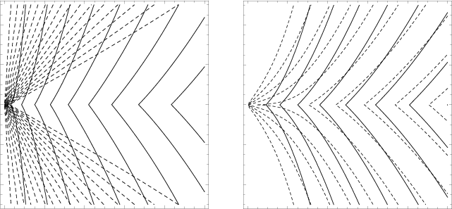 resistive case (solid lines). The extreme flaring of field lines in the