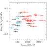 Left: the redshift evolution of the B band mass-to-light ratio. The full black lines show the simple stellar population (SSP) predictions for a Salpeter IMF and formation redshift of either zf = 2 (lower) or 2.5 (upper curve) and solar metallicity from Maraston (2005). The blue line shows the SSP for zf = 1.5 and twice-solar metallicity, the magenta line the SSP for zf = 2.5 and half-solar metallicity. The dotted line shows the best-fit linear relation and the 1σ errors dashed. Right: the (absence of) correlation of the M/L residuals Δlog M/LB + 0.54z with cluster velocity dispersion. Black points are EDisCS clusters with HST photometry, cyan points with VLT photometry. Each EDisCS cluster is identified by its short name for clarity, see Table 4 for the full name. Red points are from the literature, Bender et al. (1998) and van Dokkum & van der Marel (2007). Cluster velocity dispersions come from Halliday et al. (2004) and Milvang-Jensen et al. (2008) for EDisCS clusters and from Edwards et al. (2002) (Coma), Le Borgne et al. (1992) (A2218), Gómez et al. (2000) (A665), Carlberg et al. (1996) (A2390), Fisher et al. (1998) (CL1358+62), Mellier et al. (1988) (A370), Poggianti et al. (2006) (MS1054-03 and CL0024+16), van Dokkum & van der Marel (2007) (3C 295, CL1601+42, CL0016+16), Tran et al. (2005) (MS2053-04), Jørgensen et al. (2005) (RXJ0152-13), and Jørgensen et al. (2006) (RXJ1226+33) for the literature clusters. We estimate σclus for RDCS1252-29 and RDCS084+44 from their bolometric X-ray luminosity and the relation of Johnson et al. (2006). Circles indicate clusters at redshift > 0.7.