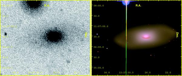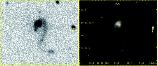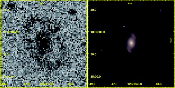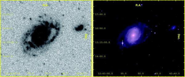 From top to bottom, GUViCS NUV (left) and NGVS (SDSS in the case of VCC 320, which is located outside the NGVS footprint; right) gri colour images of a) the lenticular galaxy NGC 4429, b) of the spiral NGC 4639 and of the Im VCC 1931, c) of the newly classified Im VCC 320, d) of the background interacting system NGC 4320 and e) of the spiral ring galaxy IC 3199.