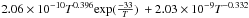 4.0 × 10-9T-0.17 for T ≤ 300 for T > 300 | GJ07 | ||