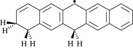Isomers of hydrogenated pentacene cations with energy differences according to Eq. (1) less than the accuracy of the calculational method (0.1 eV) using B3LYP/6-31+G(d, p).