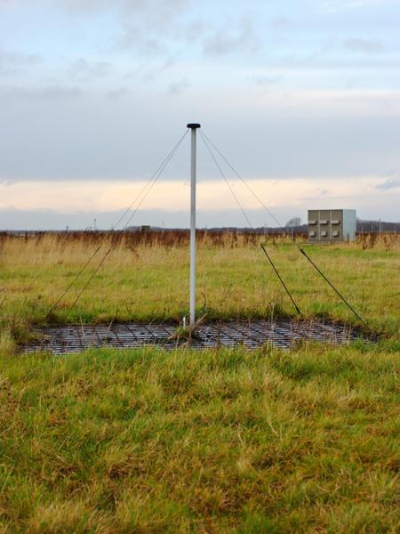 Antenna types of the Low-Frequency Array. Left image: a low-band antenna with a cabin in the background. Right image: part of a high-band antenna station, consisting of 24 tiles of 4 × 4 high-band antennas.