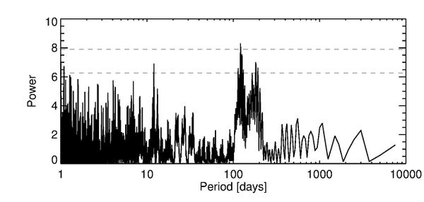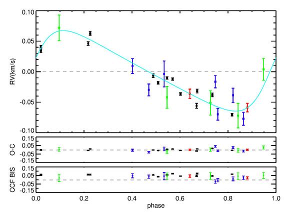 Top: Lomb-Scargle periodogram for S364. Bottom: phased RV measurements and Keplerian best fit, best-fit residuals, and bisector variation for S364. Same symbols as in Fig. 1.