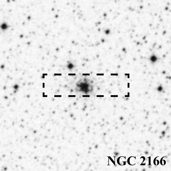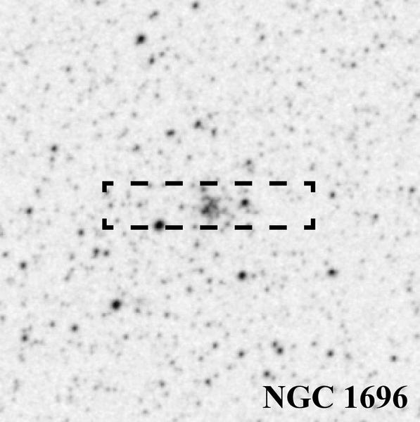 DSS 5′ × 5 images for the studied SCs. Rectangles represent the observed regions. North is up and east is to the left.