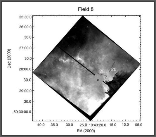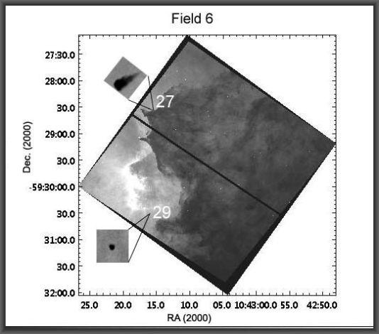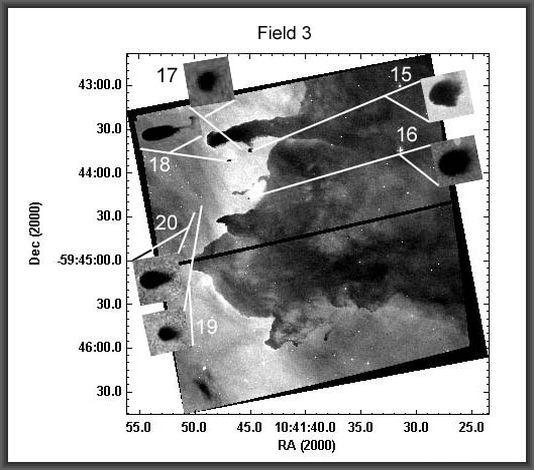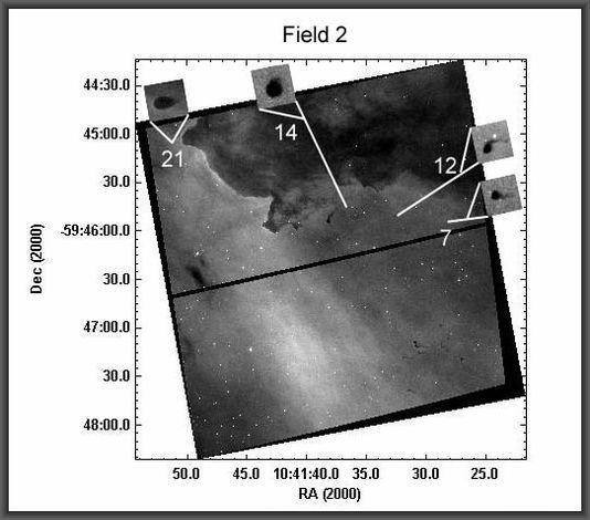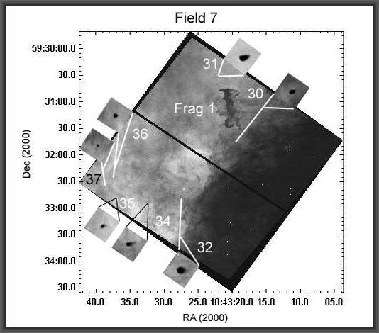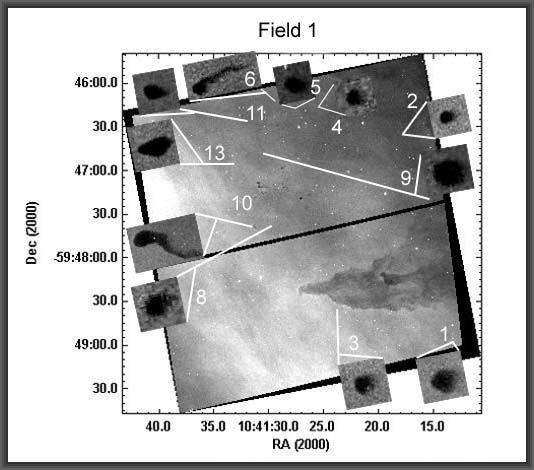 Fields 1 to 8 with object designation and inserted enlargements of globulettes.