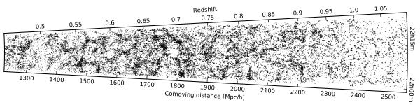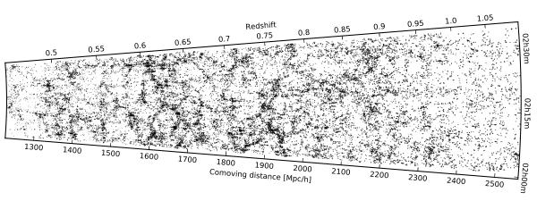 Large-scale galaxy distribution at 0.45 <z< 1.1 unveiled by the VIPERS PDR-1 catalogue in the CFHTLS W1 and W4 fields (left and right respectively), currently including ~ 55 000 redshifts. Galaxy positions are projected along the declination direction, where the width is ≃ 1° for W1 and ≃ 1.5° for W4. Note the high-resolution sampling of large-scale structure in VIPERS, comparable to that of SDSS Main and 2dFGRS at z< 0.2.