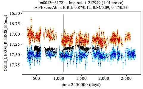 Same as Fig. B.1, but for OGLE-II transient candidates that have non-transient EROS matches.