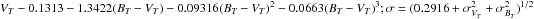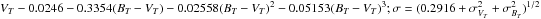 = | VT − 0.0478 − 0.578(BT − VT) − 0.0677(BT − VT)2 − 0.2828(BT − VT)3 + 0.4395(BT − VT)4 + 0.1541(BT − VT)5;σ = σVT | |