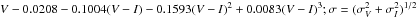 11 | R F | = | R − 0.0066 − 0.0563(V − R) − 0.2505(V − R)2 + 0.3912(V − R)3 − 0.0707(V − R)4;σ = σV | |